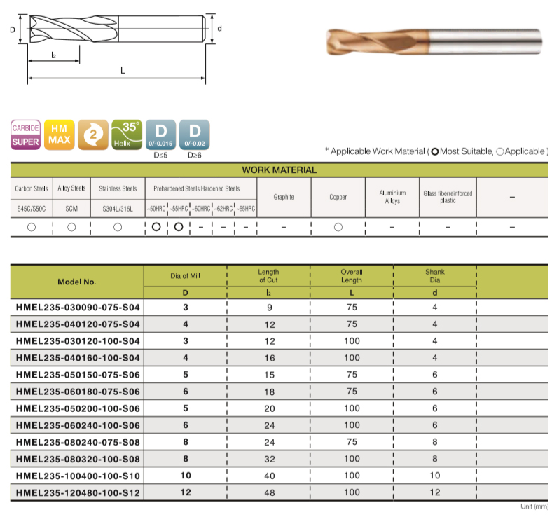 Prodloužená TK fréza 55HRC - 2 břítá TiAlNSkladem 5 ks795 Kč/ ks657 Kč bez DPH