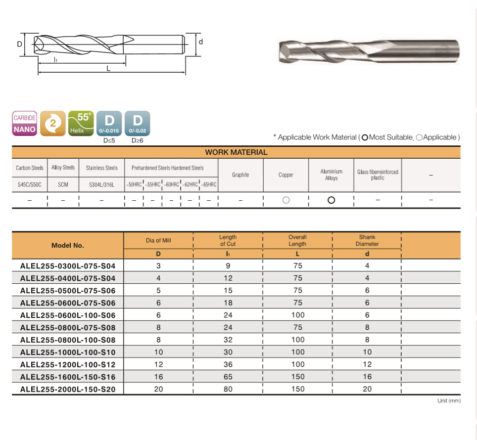 Prodloužená tvrdokovová fréza na hliník - 3 břitá NANOSkladem 6 ks890 Kč/ ks736 Kč bez DPH