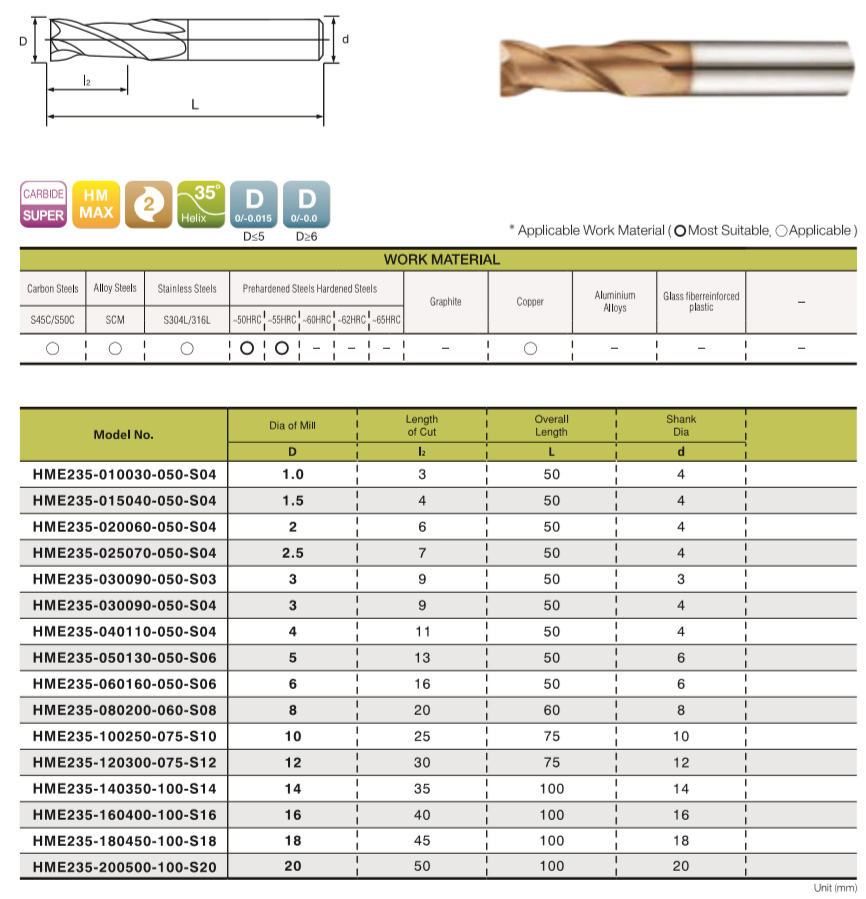 TK fréza 55HRC - 2 břítá TiAlNSkladem 13 ks880 Kč/ ks727 Kč bez DPH