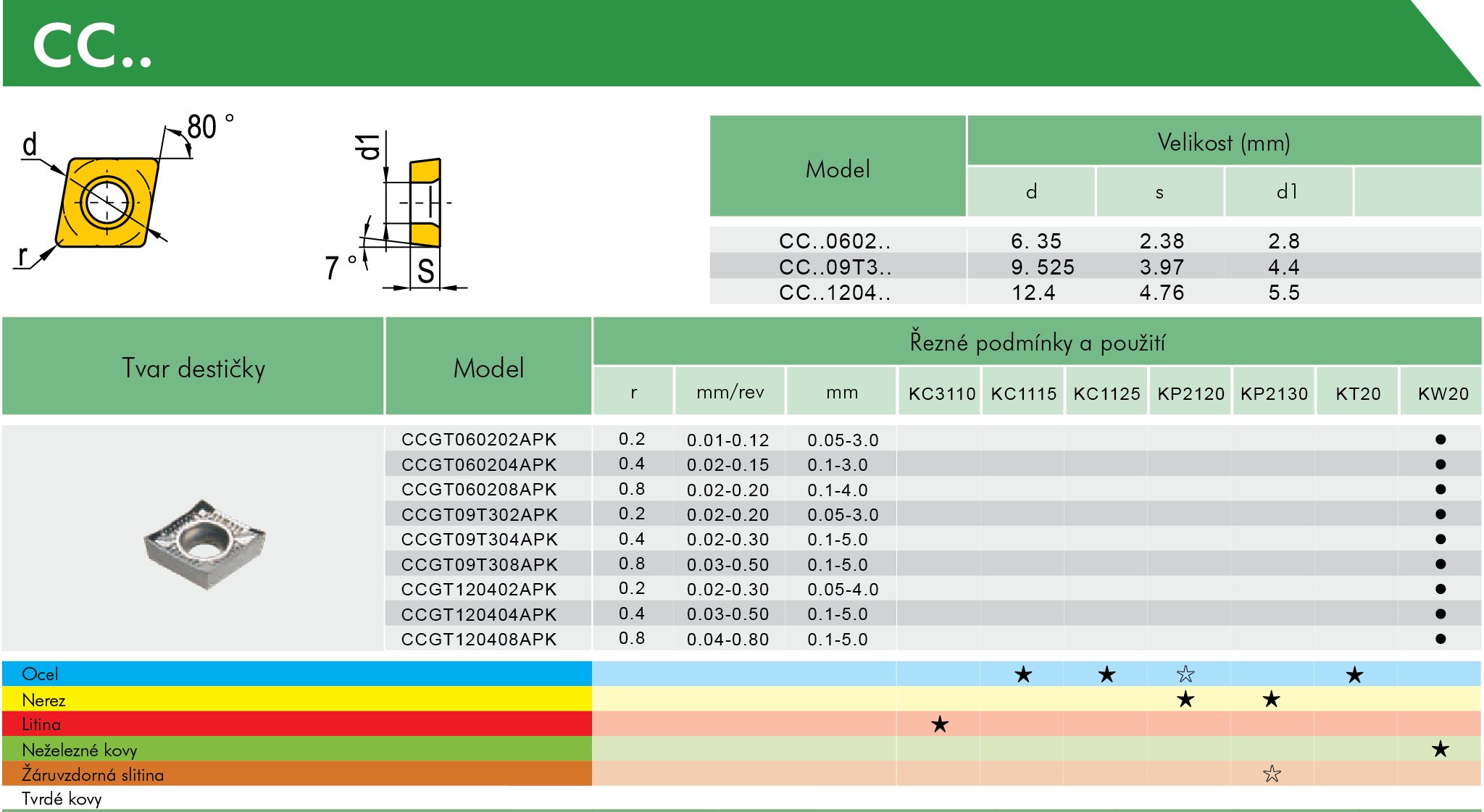 Výměnná břitová destička CCGT na hliníkSkladem 1 ks1 155 Kč/ ks955 Kč bez DPH