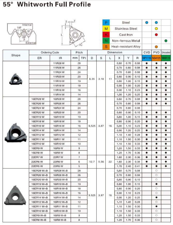 Vyměnitelná závitová břitová destička ER/IR.